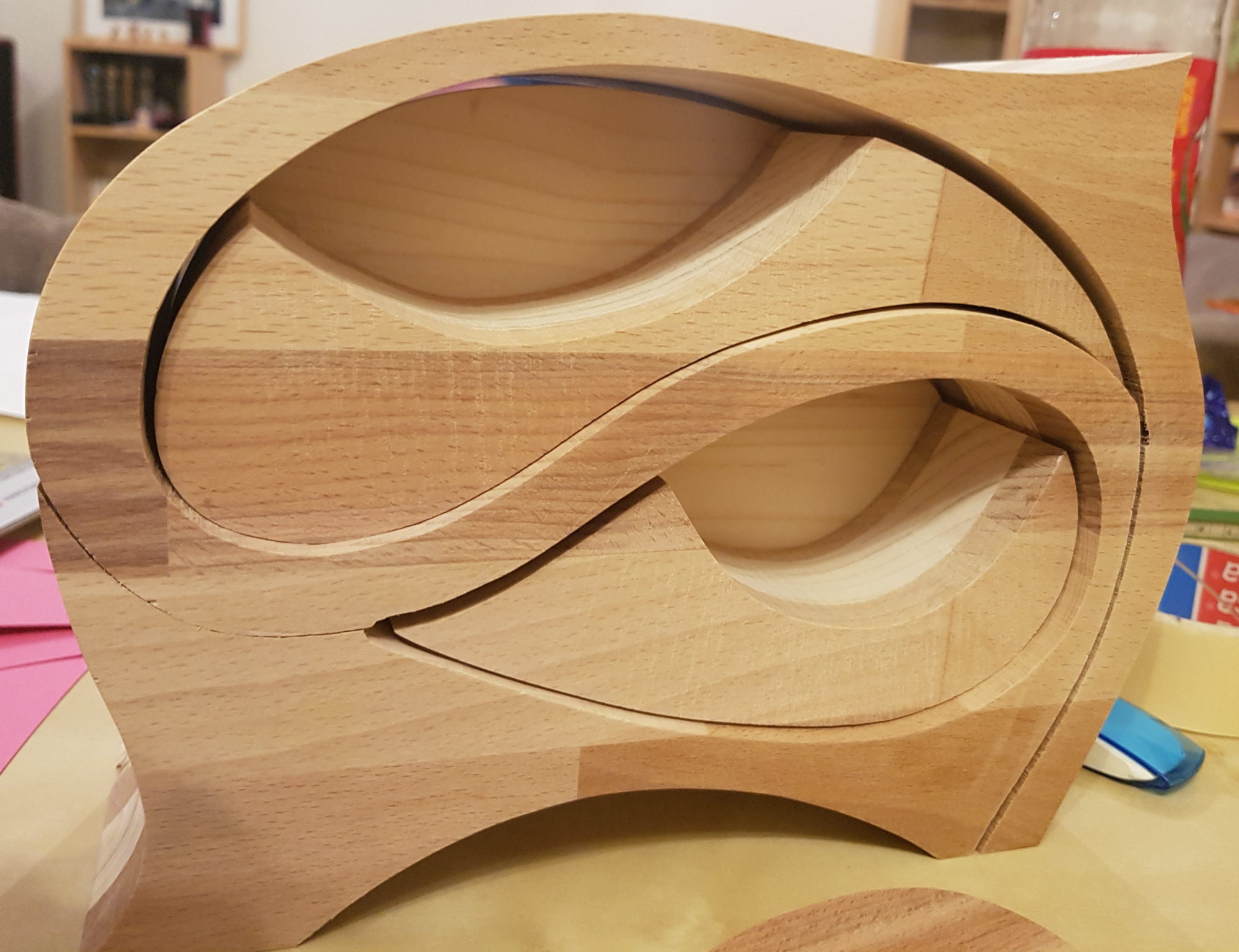 Die Grundidee einer Bandsäge-Box: Man sägt einen Block in viele einzelne Teile und klebt anschließend die wieder zusammen, die man für die Box braucht.
